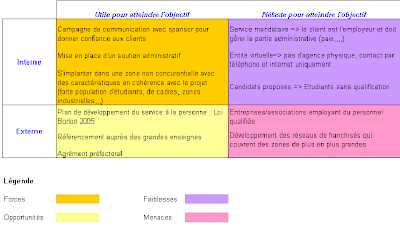 Une analyse de lentreprise elle même et de ce quelle est capable de faire ou pas. Applicable aux entreprises aux projets de création mais aussi aux territoires et aux individus il est essentiel à toute démarche marketing notamment dans le cadre dune réflexion sur la stratégie de développement commerciale.