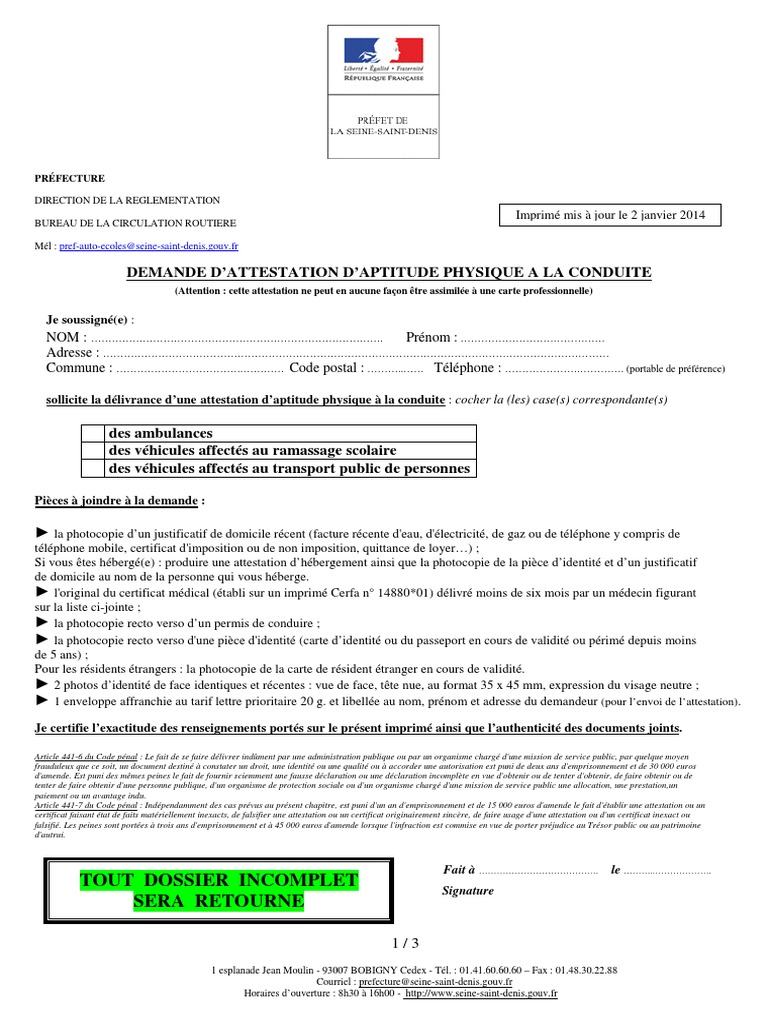 Ce document peut notamment être utilisé en cas de vol ou de perte du permis. Cependant il sera de rigueur de limprimer avant de la transmettre au médecin lors de la visite médicale.