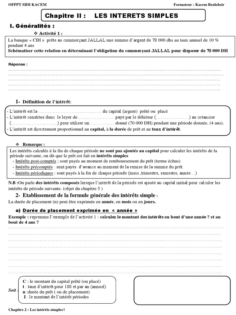 Cest la rémunération que touchera le prêteur pour avoir bien voulu prêter son argent.
