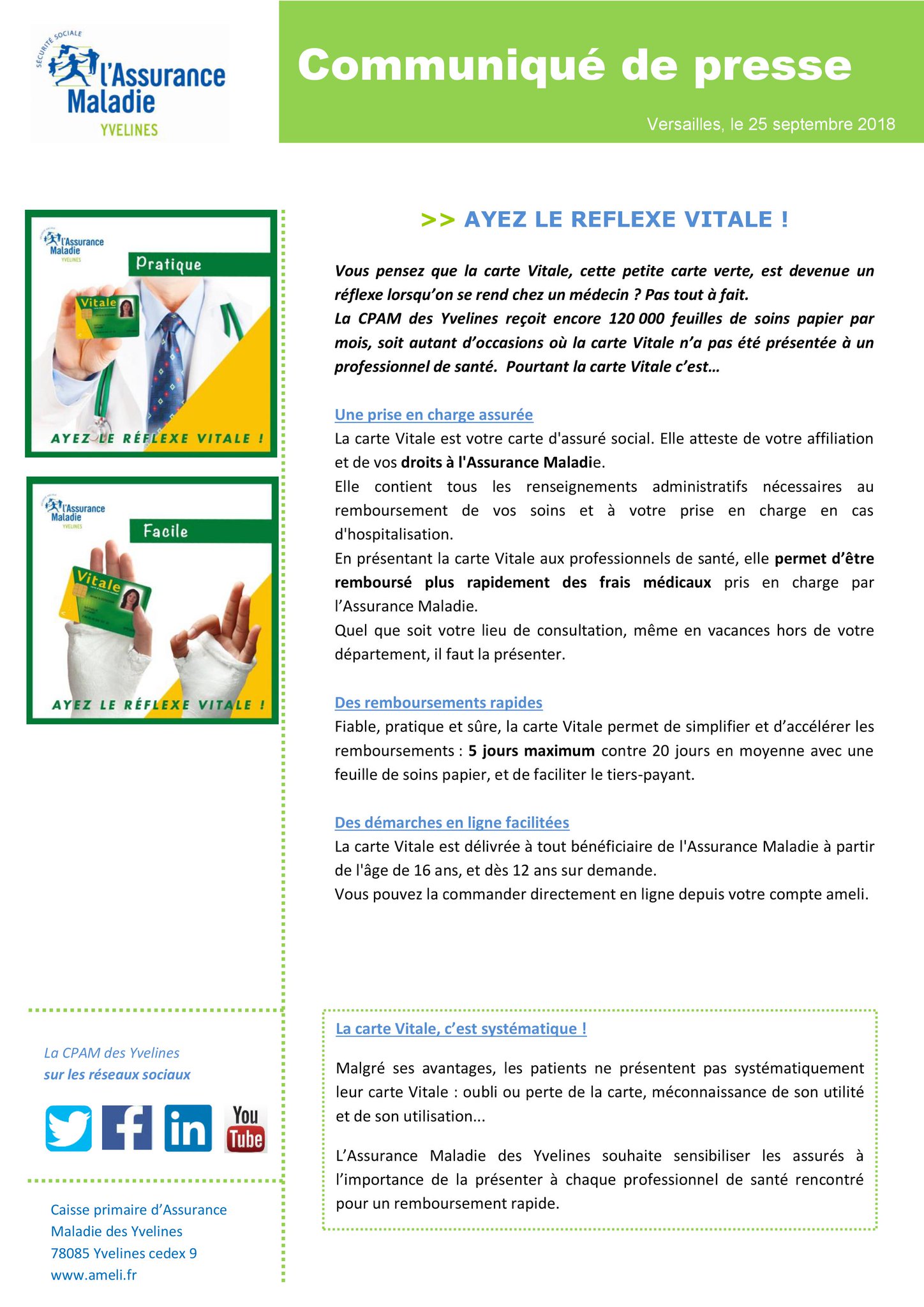 Elle nest pas obligatoire mais permet dêtre remboursé plus rapidement. En cas de perte ou de vol de carte vitale il faut le signaler à la cpam et faire une demande de nouvelle carte vitale.