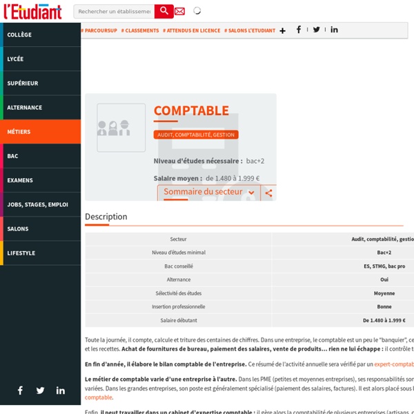 Expert comptable fiche m tier. Partenaire clé du dirigeant il laccompagne dans ses prises de décisions. Ce nest rien de le dire mais lela comptable est à laise avec les chiffres. Lactivité principale de lexpert comptable est le conseil aux entreprises. Plus que tout lela comptable doit être très organisé et résistant aux stress notamment quand les entreprises doivent établir leur. Une mission dopinion. Favoriser le développement des entreprises en apportant conseils et orientations stratégiques fait partie intégrante du métier.