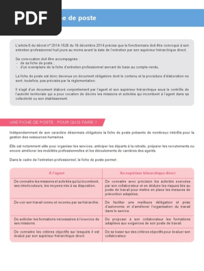Il ny aucune obligation à remplir une fiche de poste. Les informations quune fiche de poste de travail doit impérativement contenir figurent à lannexe x2 2 du code. à quoi sert elle. Il est aussi essentiel pour votre carrière car il sert de socle à lévaluation professionnelle annuelle. Lentreprise la fiche de poste a pour but de rendre compte des éléments. Elle nest toutefois pas obligatoire et le refus par lemployeur de transmettre une fiche de poste ne constitue pas un.