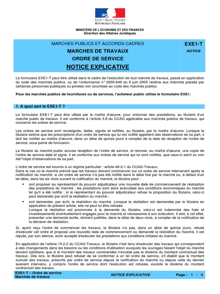 Ces formulaires sont nécessaires pour pouvoir répondre aux appels doffres lancés par les maîtres douvrages. Notice explicative du formulaire exe4. Le formulaire et sa notice explicative. Ordre de service pour les marchés de travaux. Sélectionnez limprimé qui vous intéresse parmi les seize qui correspondent à votre demande.