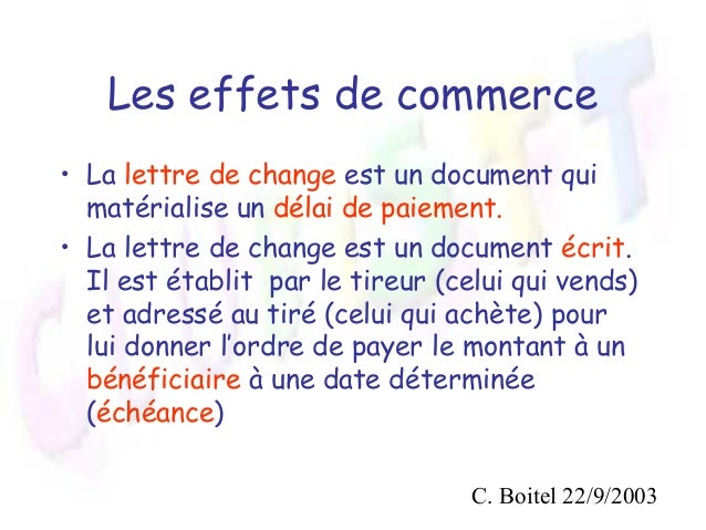 Les effets de commerce duration. La lettre de change à lavantage de donner la possibilité à son porteur dobtenir des.