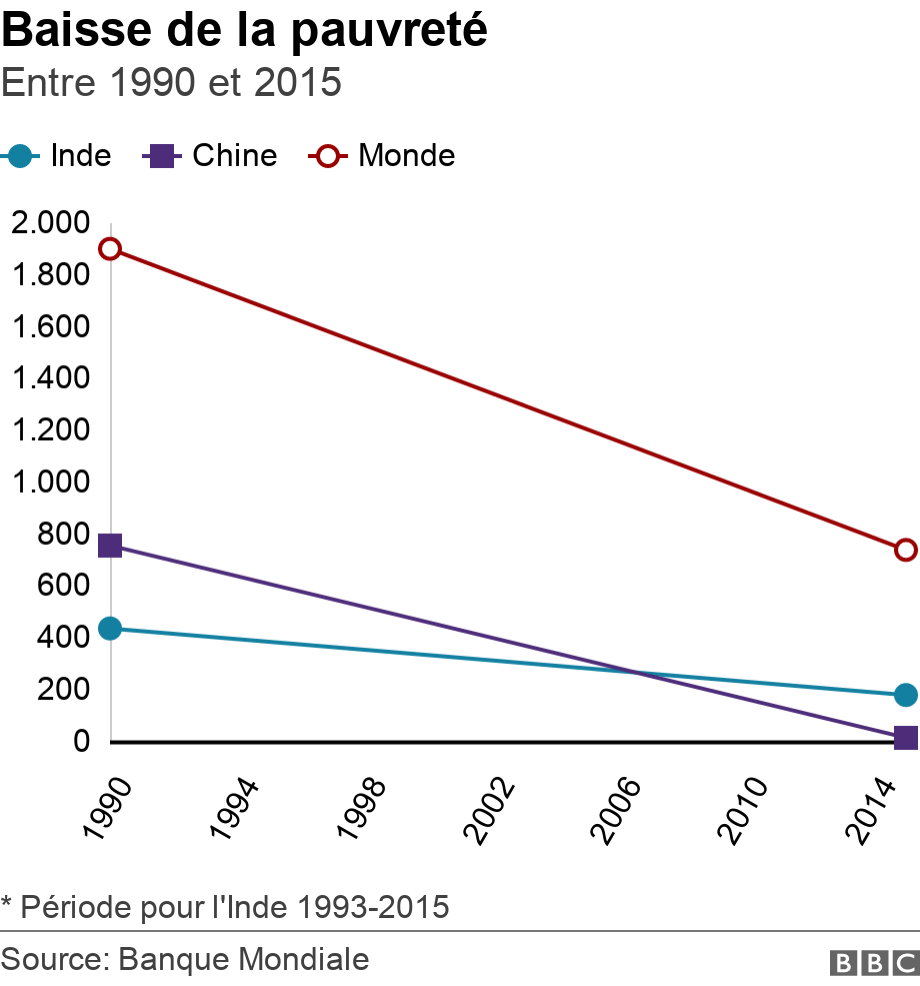 Le nombre de personnes vivant sous le seuil dextrême pauvreté 190 dollar par jour et par personne soit 170 euros dans le monde a diminué dun peu plus dun milliard en trente ans passant de 19 milliard en 1984 à 736 millions en 2015 selon les estimations de la banque mondialeune évolution dautant plus impressionnante que dans le même temps la population mondiale. Lextrême pauvreté dans le monde régresse.