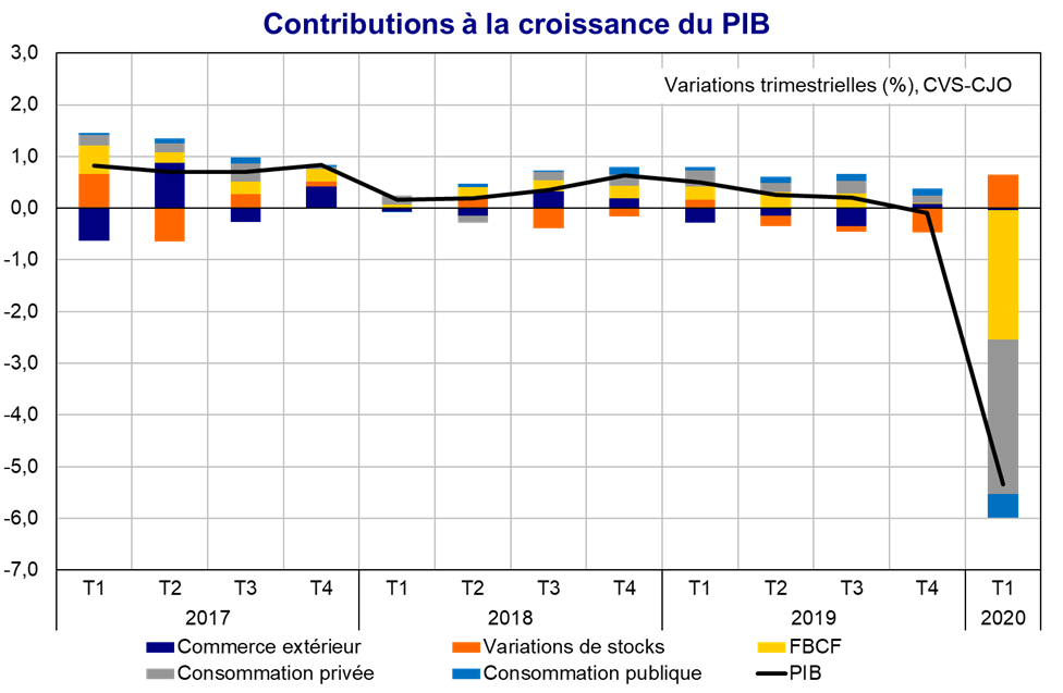 Le pib de la france. La france elle occupe la 7e position du classement contre la 6e en 2018. Le pib est un indicateur économique qui permet de mesurer la production économique intérieure réalisée par un pays. Cette statistique montre le produit intérieur brut pib de la france du 3e trimestre 2014 au 1er trimestre 2020 en milliards deuros. Le paroxysme de la crise est atteint au premier trimestre 2009 16. Dans les prévisions davril 2019 du fmi le pib de lhexagone est en effet attendu en baisse de 05. Mais le pib ne reflète pas forcément la richesse de ses habitants.