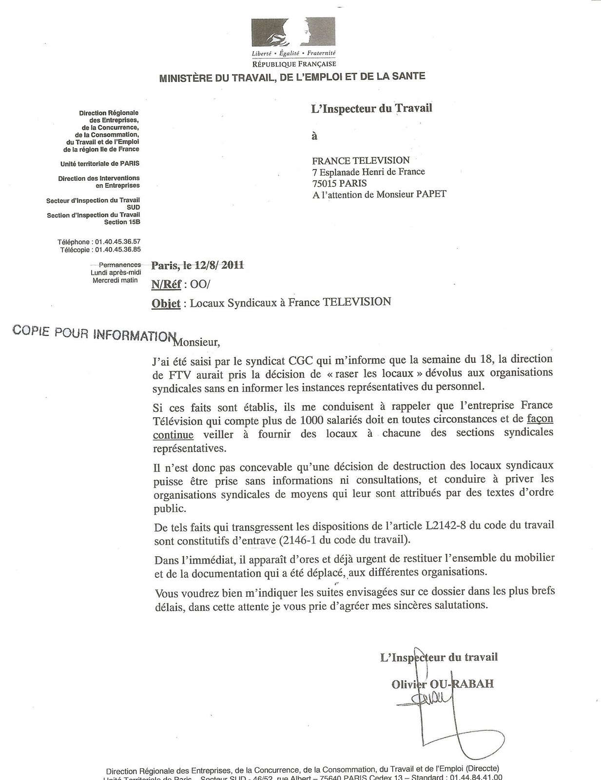 Lettre l inspection du travail. Cette infraction peut être sanctionnée dun an de prison et dune amende de 3750 euros et faire lobjet dune. Avant de saisir linspection du travail interrogez votre employeur sur vos droits. Les inspecteurs ont également un rôle dinformation et de prévention et peuvent aussi intervenir en tant que conciliateurs lors de conflits. En effet avant daccorder lautorisation linspecteur du travail vérifiera si la mesure nest pas due au fait que le salarié exerce un mandat syndical. Si le doute persiste consultez des sites internet fiables susceptibles de répondre à vos questions renseignez vous auprès des représentants du personnel du syndicat etc. Ce que dit la loi.