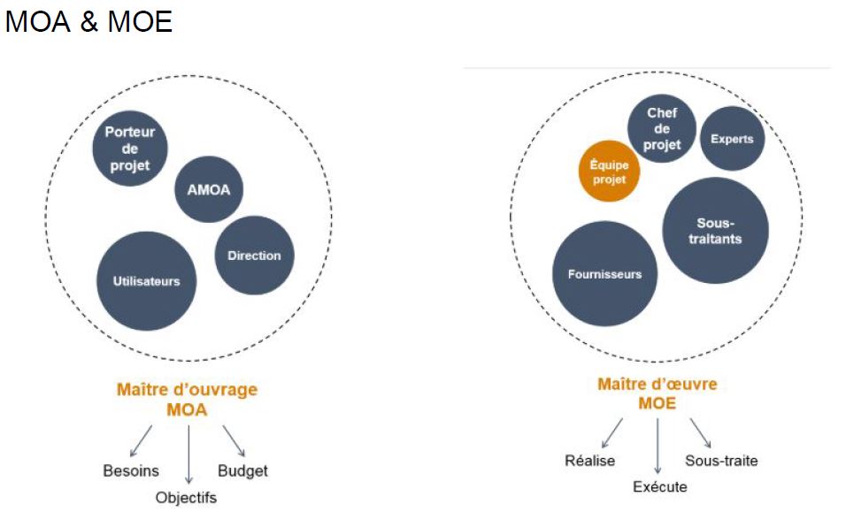 La moa maîtrise douvrage le client du projet mais pas forcément lutilisateur et la moe maîtrise doeuvre lorgane réalisateur du projet représenté par le chef de projet. Il nest pas rare avec la multiplicité et la complexité de notre mille feuille. Le bureau virtuel de lacheteur public. Le résultat attendu du projet est la réalisation dun produit appelé ouvrage. Le maître douvrage moa est la personne ou le groupe qui exprime le besoin. Moa et organisation maîtrise douvrage déléguée.