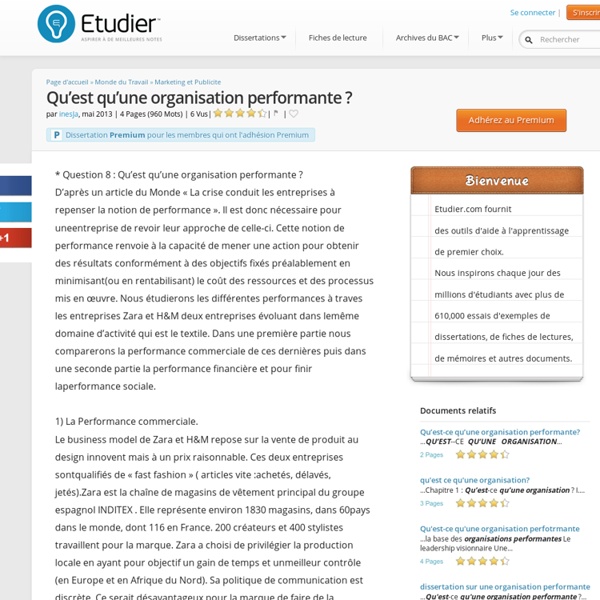 Quest ce quune organisation performante. 20 mn comment voyez vous le traitement de la question de gestion. En quoi limage de marque améliore t elle la performance de lorganisation. Quest ce quune organisation performante. êtes vous sûr de vouloir remettre à zéro les scores et lavancement pour cette matière. 5 quest ce quune organisation performante.