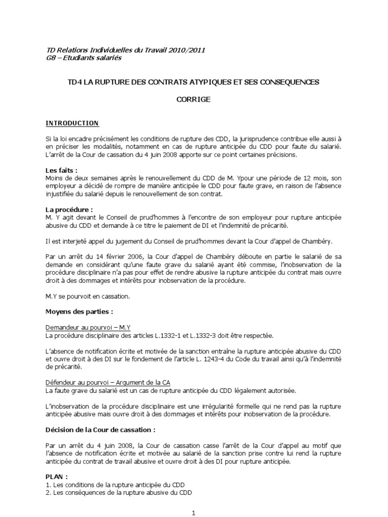 Rupture Du Cdd Rupture De Cdi Et Rupture De Contrat D La